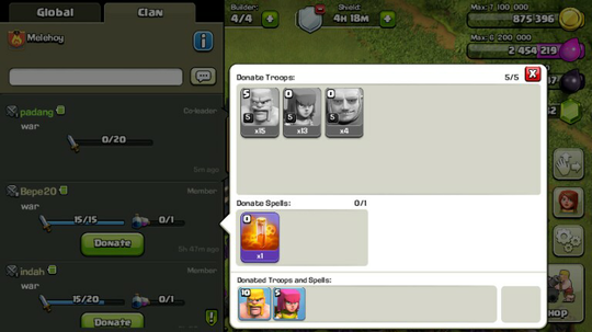 • jumlah pasukan baru, tingkat pertahanan, dan Clan Eja sumbangan